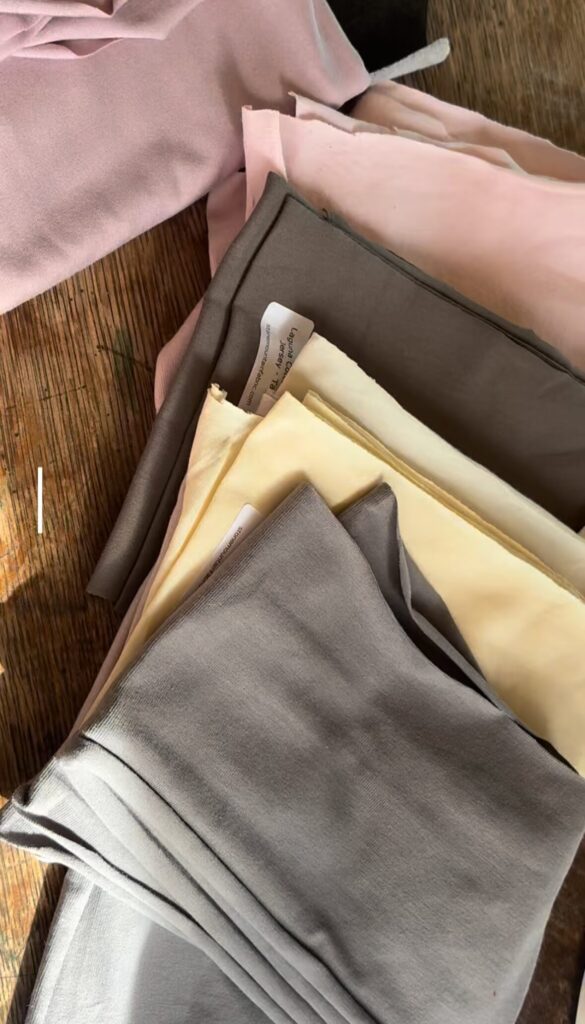 We are choosing fabric colors for our organic tie structure (custom designed to stay on overnight on all hair types and heads!), and just look at all the beautiful options! It’s like a blooming of color and a pop of spring in our studio.